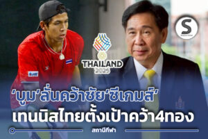 ย้อนอดีต ชมบันทึกพิธีเปิดการแข่งขันซีเกมส์ครั้งที่ 24 ที่ไทยเป็นเจ้าภาพ โดยนครราชสีมา เมื่อปี พ.ศ.2550 READ MORE October 6, 2025 บันทึกกีฬาไทย ตอนนี้ เป็นการรวมเรื่องของ อดีตตำนานลมกรดของไทยอีกคนที่ชื่อ สุทธิ มัณยากาศ ที่เราอยากจะบันทึกไว้ที่นี่ ให้คนรุ่นหลังที่สนใจได้สืบค้นหา READ MORE July 19, 2025 บันทึกกีฬาไทย ขอย้อนอดีตกับผลงาน ของ พลตรี อาณัติ รัตนพล ผู้ซึ่งคือ ยอดนักวิ่งระดับตำนาน ที่สร้างผลงานต่อเนื่องให้กับประเทศไทย ในลู่วิ่ง และในนามทีมชาติไทย มาเก็บไว้ที่นี่ The Station THAI READ MORE July 11, 2025 บันทึกกีฬาไทย : บันทึกเส้นทางปิงปองไทย EP.4 เหตุการณ์-กิจกรรม ช่วงปี พ.ศ. 2531-2540 READ MORE June 10, 2025 บันทึกกีฬาไทย : บันทึกเส้นทางปิงปองไทย EP.3 เหตุการณ์-กิจกรรม ช่วงปี พ.ศ. 2521-2530 READ MORE June 10, 2025 บันทึกกีฬาไทย : บันทึกเส้นทางปิงปองไทย EP.2 เหตุการณ์-กิจกรรม ช่วงปี พ.ศ. 2511-2520 READ MORE June 10, 2025 บันทึกกีฬาไทย : บันทึกเส้นทางปิงปองไทย EP.1 ยุคปฐมบท ปี พ.ศ.2500-2510 READ MORE June 10, 2025 บันทึกกีฬาไทย : ย้อนอดีตถึงเมื่อปี 2515 ที่รัฐบาลไทย เปิดทางให้กีฬาปิงปอง เป็นสื่อกลาง และเป็นการสร้างจุดเริ่มต้น ในการเชื่อมสัมพันธ์ ไทย-จีน ที่ต่อเนื่องมาจนปัจจุบัน READ MORE May 4, 2025 เพื่อให้ลองพิจารณา…บันทึกทำเนียบประธานคณะกรรมการโอลิมปิคไทย ที่มีอยู่ ‘ถูกต้องไหม’ และมาดูกันว่า ก่อนจะนั่งเก้าอี้ใหญ่ องค์กรกีฬาที่สำคัญนี้ ผู้นำแต่ละคนวันนั้น มี ‘ฐานอำนาจ’ จากไหน !!! ในแต่ละยุค READ MORE January 19, 2025 ดูเพิ่มเติม ข่าวใหม่ล่าสุด ศึกม้าแข่ง 9 พ.ย.68 บิ๊กบอย ตามส่องกล้องมองเพื่อความสนุก ดวงน้องเล็ก จะชิง วินมาร์ค ส่วน เซย์อิทโซ แบกเต็มพิกัด จะหนี บรุ๊คลินสตาร์ ไหวหรือไม่ ต้องติดตาม Read More » “ศ.ดร.บังอร” นำ ม.กรุงเทพธนบุรี ก้าวสู่เวทีโลกอีกครั้ง ด้วยการรับรางวัล QS Stars 5 ดาว ตอกย้ำความเป็นสถาบันการศึกษาเอกชนระดับสากล Read More » ‘เอ็นบีที’ แม่ข่ายจับมือพันธมิตรทุกแพลตฟอร์ม เอาใจคอกีฬา ยิงสดจุใจกว่า 30 ชนิดกีฬา “ซีเกมส์” ครั้งที่ 33 ที่สุดในประวัติศาสตร์ Read More » เทควันโดจริงจัง หวังเจ้าทองซีเกมส์ต่อเนื่อง “บัลลังก์” ดีกรีแชมป์โลกคนล่าสุดนำทัพสู้ Read More » Shopee แจกโชค ร่วมเชียร์ซีเกมส์กับแคมเปญ “เชียร์เจ้าซีเกมส์ รับโชคแจก 35 ล้าน” Read More » กกท. จับมือ สถาบันการแพทย์ฉุกเฉินแห่งชาติ วางมาตรการเข้ม เครื่อง “AED” อุปกรณ์การแพทย์พร้อม ทุกสนามซีเกมส์ปลอดภัยสูงสุด Read More »