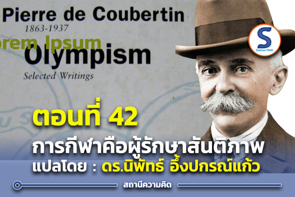 ตอนที่ 42 : การกีฬาคือผู้รักษาสันติภาพ : หนังสืออุดมการณ์โอลิมปิกของคูเบอร์แต็ง : แปลโดย : ดร.นิพัทธ์ อึ้งปกรณ์แก้ว