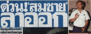 22 ตุลาคม 2539 ดร.สมชาย ที่ขณะนั้นยังเหลืออายุราชการอีก 7 ปี ได้ส่งหนังสือขอลาออกจากตำแหน่งผู้ว่าการ กกท. ต่อนายปองพล อดิเรกสาร รัฐมนตรีประจำสำนักนายกรัฐมนตรี ในฐานะประธานบอร์ด กกท. โดยอ้างเหตุผลเกิดจากความอิ่มตัว พร้อมทั้งย้ำ ไม่ได้เกี่ยวกับการเมืองใดๆ (แต่จริงๆ กรณีนี้ ดร.สมชาย ให้สัมภาษณ์กับสื่อที่ใกล้ชิดว่า เพราะการเมือง 100 % ที่รุกเร้า แต่ไม่อยากเอ่ยพาดพิง) และจากนั้นบอร์ด กกท.ก็อนุมัติ และ แต่งตั้ง ดร.สมชาย ไปนั่งในตำแหน่งที่ปรึกษาการกีฬาแห่งประเทศไทย ที่เคยเปิดตำแหน่งไว้ให้กับ นายไพบูลย์ ก่อนหน้านี้