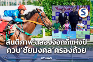 ม้าแข่งเปิดศักราช 2569 นัดแรก ‘สันติภาพ’ จ๊อกกี้ยอดเยี่ยมแห่งปี 68 ควบชัยมงคลเข้าวินคว้าถ้วยระยะไกลมาครองได้ ขณะที่ ม้ามังกรอลังการ ขยี้ ไวเปอร์คอมมานด์ สำเร็จ ส่วนเที่ยว 3 ลงโทษ ชาล็อต
