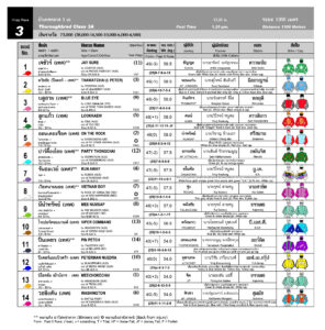 เที่ยวนี้ม้านำเข้าจากออสเตรเลียทั้งสามตัว ดูมีภาษีเหนือกว่า เริ่มจาก ฟลายอเวย์ (6) โดยจ๊อกกี้พร้อมรบ จะได้เปรียบจากระยะและซองใน (ซอง 2) ขณะที่ ดาร์กช็อคโกแลต (7) ภายใต้การคุมบังเหียนของจ๊อกกี้จตุพล แม้ได้ซองนอก แต่ฝีเท้าไม่ธรรมดาเลย ส่วนทางด้าน เบลล่าซิญญอนร่า (3) ตั้งเป้าคว้าชัยเป็นวินที่สองในการแข่ง และยังน่าจับตามองอย่างยิ่ง