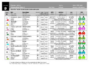 เบนดิโก้ (6) ฟอร์มดีต่อเนื่อง และดูพร้อมจะคว้าชัย หลังจากขี่เข้าที่สองไว้เมื่อสองสัปดาห์ก่อน ซึ่งตอนนั้นถูกม้าเป๋าฮื้อ พาออกไปทางนอกช่วงโค้งสุดท้าย ต่อมาขอมองที่ รักนาย (8) มีฝีเท้าปลายแรงดี สามารถวิ่งจี้เข้ามาลุ้นเพลสได้ ส่วนทางด้าน ดวงงามตา (5) ขี่โดยจ๊อกกี้อาชาวิน จากซอง 6 หากขี่แบบอดทนรอจังหวะได้ มีสิทธิ์ติดเพลสได้เช่นกัน