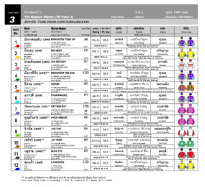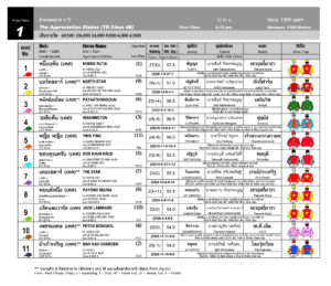 เที่ยวที่ 6 – The Thankful Stakes (ม้าไทยคลาส พรีเมียม) – ระยะ 1,100 เมตร