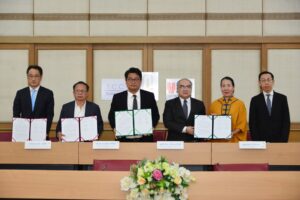 มหาวิทยาลัยมหาสารคาม (มมส.) ร่วมกับ บริษัท ที.ซี.ซี เทคโนโลยี จำกัด และบริษัท ยิบอินซอย จำกัด ลงนามบันทึกข้อตกลงความร่วมมือ (MOU) โครงการพัฒนา Center of Digital Learning Hub โดย รองศาสตราจารย์ประยุกต์ ศรีวิไล อธิการบดีมหาวิทยาลัยมหาสารคาม ลงนามร่วมกับ นายธีรพันธุ์ เหลืองนฤมิตชัย กรรมการผู้จัดการ บริษัท ที.ซี.ซี เทคโนโลยี จำกัด และ นางมรกต ยิบอินซอย กรรมการผู้จัดการใหญ่และประธานเจ้าหน้าที่บริหาร บริษัท ยิบอินซอย จำกัด ณ ห้องประชุม 1 ชั้น 4 อาคารบรมราชกุมารี มหาวิทยาลัยมหาสารคาม