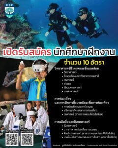 มูลนิธิเพื่อสิ่งแวดล้อมและสังคม (Environmental and Social Foundation) เปิดรับสมัครนักศึกษาฝึกงาน จำนวน 10 อัตรา ฝึกปฎิบัติงานที่ กองทุนวิจัยและอนุรักษ์ช้างไทย Thai Elephants Research and Conservation Fund เขาใหญ่ อ.ปากช่อง จ.นครราชสีมา สามารถดูเนื้อหาคณะและสาขาที่เปิดรับได้จากภาพด้านล่าง ผู้สนใจฝึกงานสมัครได้ตั้งแต่บัดนี้เป็นต้นไป โดยติดต่อมาที่ Inbox มูลนิธิเพื่อสิ่งแวดล้อมและสังคม หรือที่ Line @esf.thailand